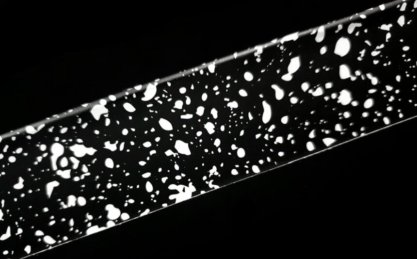 Once confirmed genuine, the fusion crust itself becomes the primary observation site. Texture, color variation, and surface patterns are all visible there at appropriate magnification. The stage plate color affects what the eye picks up: different backgrounds pull out different aspects of the specimen’s surface.